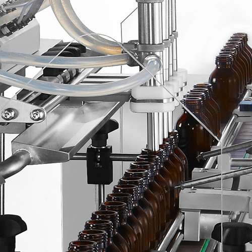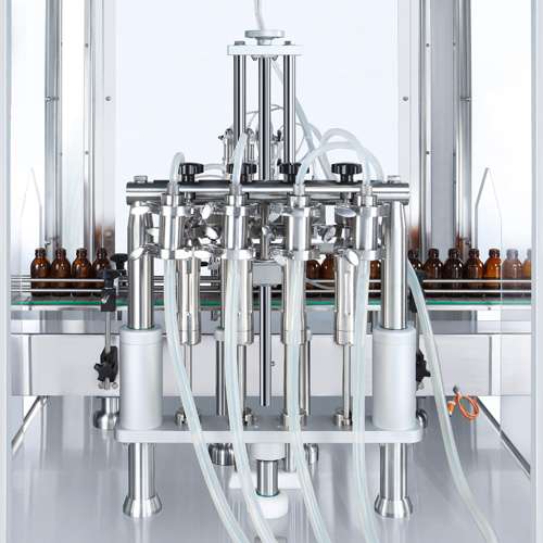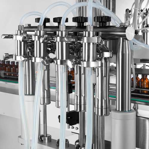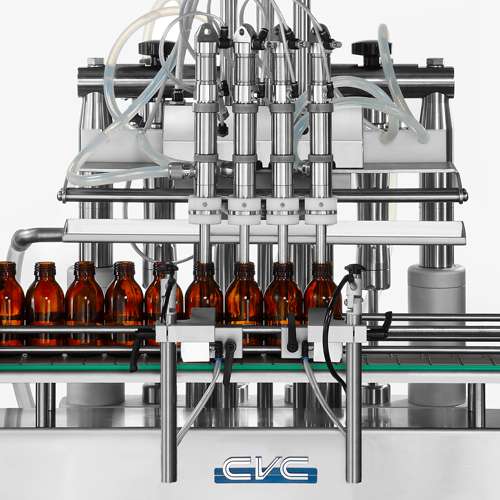 The CVC 3036-4 with in-line configuration are really versatile fillers that easily and inexpensively accommodates to different bottle sizes. STANDARD FEATURES • Diving type filling mechanism: filling nozzles dip into bottles and move up while liquid is being filled. It features less foaming during filling. • 4 filling stations. • Servo driven on both volumetric pistons and nozzles. • Flexible adjustments can meet different product characteristics and bottle shapes. • Various speed settings of liquid filling. • Drip tray. • Capability of recipe storage. • Simple and quick tech mode setup. • Track full / track empty sensors. • Bottle mouth holder design for special applications (require to conduct our factory test). • PLC control with user-friendly operation. • Motorized single lane sanitary conveyor. customized conveyor lengths are available upon request. • Type 304 stainless steel & Type 316L stainless steel construction meets cGMP requirements.. • ISO 9001 certified. AVAILABLE OPTIONS: • Include various sizes of volumetric pistons with fill volume capacity range from 20 ml up to 500 ml • Shut-off nozzles • 1 on-12 manifold pipe • Liquid buffer/storage tanks • Bottle neck holders • Bottle feed screw • Bottle feed screw for handling irregular shaped containers • 21 CFR PART 11 compliance • OPC UA for data collection