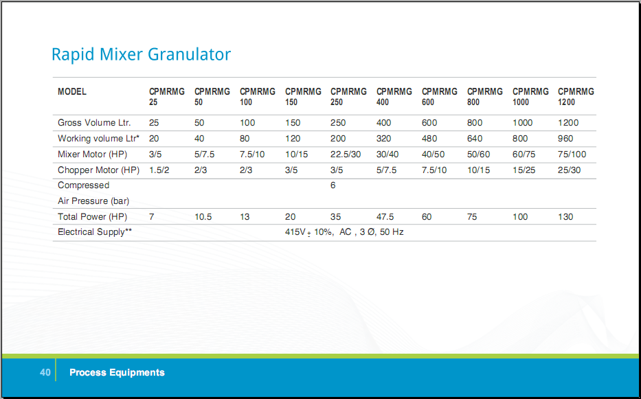 • In compliance with cGMP guidelines • Modular Design • Mixing of substances uniformly and homogeneously with special design Mixer & Chopper blades. • Electro-Pneumatic Operated Discharge • Effective sealing • Easy to clean machine