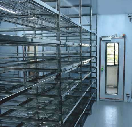 Walk In Cold Chamber/ Cooling Cabinet Construction • PUF Insulation with density of 40 Kgs/mt.3 with both side SS 304 sheet of 0.6 mm thickness duly tested & certified. • Tongue and Groove type Interlocks for Panels used in construction of Walk-In and High Capacity Stand Alone Chambers. • Heavy Duty insulated Floor Panel with anti skid carpet for secured movement. Sample Storage • Racks - secured with strong joints internally to the chamber walls, made of heavy duty SS304 frame. • Trays - Heavy Duty Perforated type, with special CNC punched perforations specially designed to maximize circulation aiding the constant uniformity in the chamber. The trays are secured with additional underside support rails to prevent flexing and warping after prolonged usage. Door • Heavy Duty Insulated Door with Full View Double layered Toughened Glass for viewing sample with good visibility. Control System • Ergonomically designed Control Panel wiring with systematic sequential ferrule printing for input and output to all components like PLC, Contactors, Isolators, MCBs SSRs. easy maintenance made possible with the aide of easy to understand wiring diagrams. • Advanced PLC program with built-in processor based Auto-Tuning to achieve and maintain constant Uniformity of set condition. • 4.3" HMI provided with adequate local data storage and a Colour TFT/LCD Display with accurate representation of operating condition in contrasting colours for easy readability from a considerable distance. • Built-In redundancy and safe guards to protect sensitive components from voltage surges. • Advanced high accuracy transmitter sensors for temperature and humidity with output of 4 to 20 mA. Dedicated voltage and surge protection for sensors. Temperature Control • Efficient, simplistic and a functionally proven design of refrigeration system using Emerson- Copeland compressors with built-in redundancy with PLC based auto-change over during intermittent power outages or component failure. • ‘U’ shaped SS Air Heater Banks controlled by PLC to achieve & chamber internal air temperature • Unique Chiller system provided with Walk-In Stability Chambers involve circulation of Chilled water through the evaporator coil providing longer sustenance of conditions during intermittent & accidental power outages.